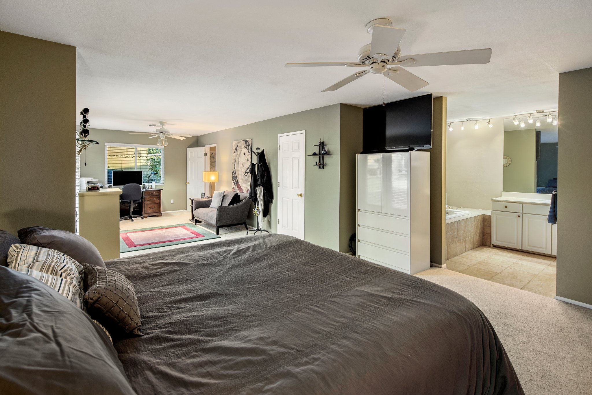 Situated on a spacious 1/3-acre lot in Moon Valley proper, this beautifully maintained home offers excellent entertaining spaces inside and outside. The front courtyard welcomes you into the home with a stunning kitchen (remodeled 2019), featuring a gas cooktop, wall ovens and large island with breakfast bar seating! The primary suite is a true retreat, complete with a private sitting area, custom walk-in closet, dedicated office space, and direct access to the backyard. Beds 2 and 3 share a hall bath, while Bed 4 is split from the other with its own ensuite bath, walk-in closet, and private exit to the backyard. Enjoy the covered patio, sparkling pebbletec diving pool, lush natural lawn, fruit trees and a gazebo. Upgrades include dual-pane windows, new AC unit in 2019, new roof in 2010.